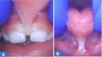 Gambar 2. Lip tie (a) dan tongue tie (b)