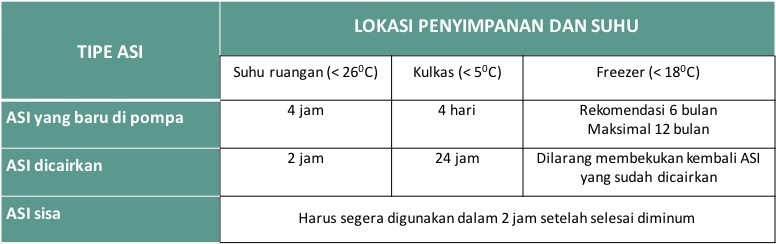 Tabel 1. Tipe ASI dan cara penyimpanannya